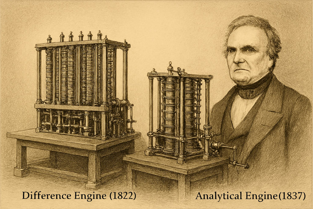 अबेकस और पास्कलाइन के बाद चार्ल्स बैबेज साहब ने सबसे पहले डिफरेंस इंजन और एनालिटिकल इंजन डिजाइन किए (पहला प्रोग्रामेबल कंप्यूटर) जिसके कारण हम उन्हें कंप्यूटर का जनक कहते हैं।